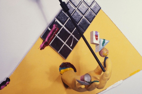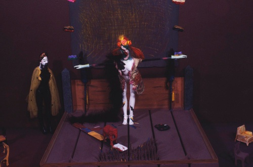 Finley Fryer’s The Cat Band invited the viewer to wander through a stained glass entrance and among the painted plaster “prop-performers.” Likewise, Phyllis Bramson’s series of wall-to-floor tableaux allowed the viewer to explore the literal and mental spaces of her work. David Saunders employed images as Allegories in his installation work Scope, while Story Mann psychologically intimidated his audience by using a dramatic film of a burning house and video documentation of a dog fight. Bruce Gundersen and Robert Clark, in their performance entitled Dagar Λne, combined ambiguous movement and sound in a cryptic, elaborate structure.