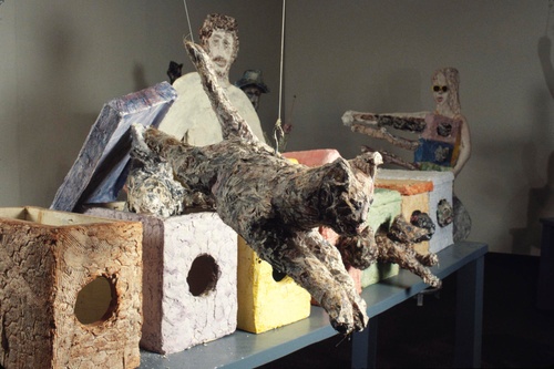 a realization in sculptural terms. With the prop-like figures, the dramatic subject matter and presentation, and a direct indebtedness to other artistic traditions, his work became deliberately theatrical.