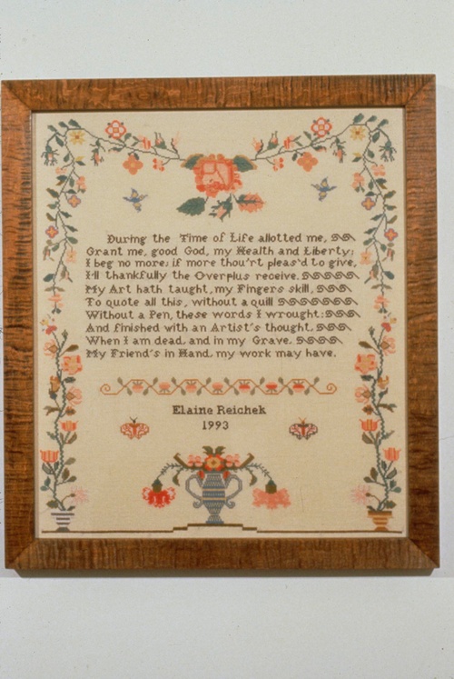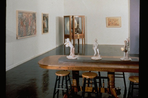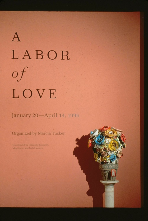 “One reason that crafts, decorative arts and folk art are seen as outside the high art tradition is because non-artists don’t have the same kind of respect for things that we could make ourselves (or think we could, given enough time, patience and money!). Still hanging in the closet is a hand-me-down of late eighteenth- and nineteenth-century Romanticism, the notion that artists must be better, smarter, on a higher plane and closer to The Truth than mere mortals. To complicate the problem, while folk processes are about what one musicologist calls ‘the ordinary and basic modes of human creativity,’ folklorists themselves have contradictory views of the meaning and importance of these modes. On the one hand, they insist that all denigrated forms should be paid attention to, thus practicing, at least theoretically, a kind of egalitarianism. On the other hand, folklorists as a group tend to see themselves as cultural arbiters and salvationists, picking from among these denigrated forms those they feel are most important. In the folk music world, for instance, an inherently democratic recognition of the accomplishments of ‘ordinary’ people is undercut by the folklorists’ insistence that only special geniuses—discovered by them—can express true creativity. This is a curious state of affairs, since it’s clear that if one admits that ‘great’ works of art can also be done by regular guys, what does it say about the geniuses? A Labor of Love was inspired by the fact that some of the most interesting work that I’ve seen recently has tackled these issues in fascinating ways. Although I’ve chosen to focus for the most part on work which is likely to be unfamiliar to The New Museum’s usual audience, as well as to folk and craft aficionados, the armature for the exhibition was built by many artists who are its forebearers, and while not included, have been crossing back and forth over this Great Divide for some time… Taken as a whole, the work in the exhibition builds on these foundations and raises larger questions about the role of art in society, a pressing concern in the light of the fact that what were once debates over government support of the arts have now become punitive measures to limit its production and dissemination. A Labor of Love is the most recent foray into what for me is a long-term investigation of the ways in which art and daily life—from the mundane to the profound—are inextricably interwoven. The separation and hierarchization of categories of art-making corresponds to those divisions found in all aspects of contemporary American life, affecting the way we think about everything from artistic ‘quality’ to the verdict in the O.J. Simpson case. The exhibition features work which melds process and product, sensuous appeal and critical content, tradition and innovation with a specific end in mind: in destabilizes artistic boundaries in order to reflect, comment on, and critique other kinds of boundaries in the lived world of social relations. Issues of quality are issues of power; at any given time, there are reasons that some expressive forms are supported while others are marginalized. For me, the most interesting and significant activities are usually found at the edges rather than at the center of artistic discourse. A Labor of Love is also an attempt to organize a group show—that much maligned form in today’s art world—which goes beyond putting disparate works of art together under a subject heading. There are many ways to organize an exhibition, but there’s no one ‘right‘ way to answer the questions, resolve the debates, please the various factions and include all the relevant work. The exhibition itself is an investigation and an inquiry, rather than an answer to a question…” 1