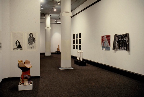 For the final installation in the “Events: Fashion Moda, Taller Boricua, Artists Invite Artists” exhibition, New Museum curator Lynn Gumpert, and Special Projects Coordinator Ed Jones asked twelve artists who had participated in the Minority Artists’ Dialog to invite two artists apiece. They were given total freedom in the selection of the exhibiting artists and, as usual, the only constraint on the work was the New Museum gallery space.